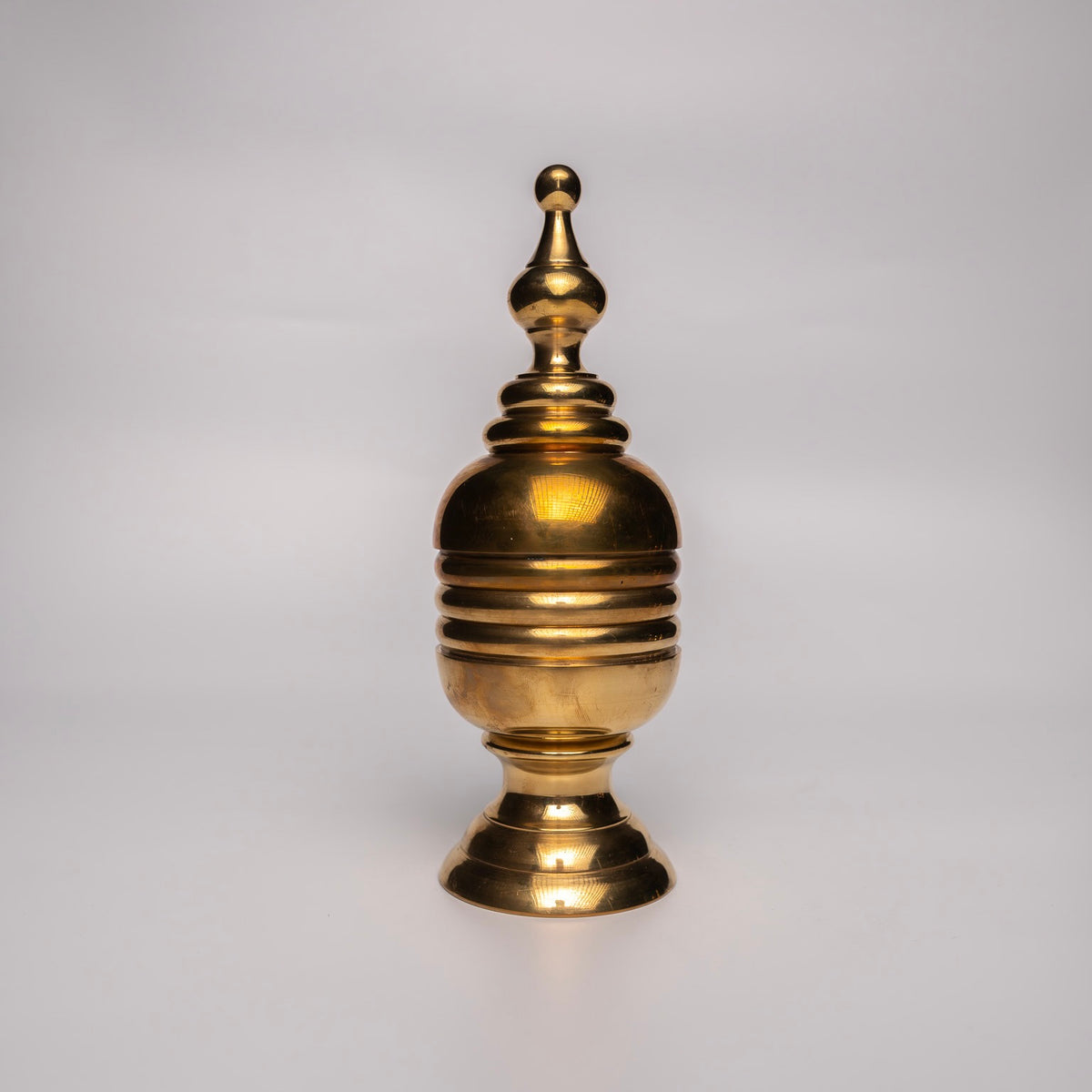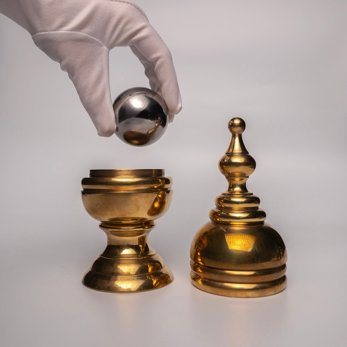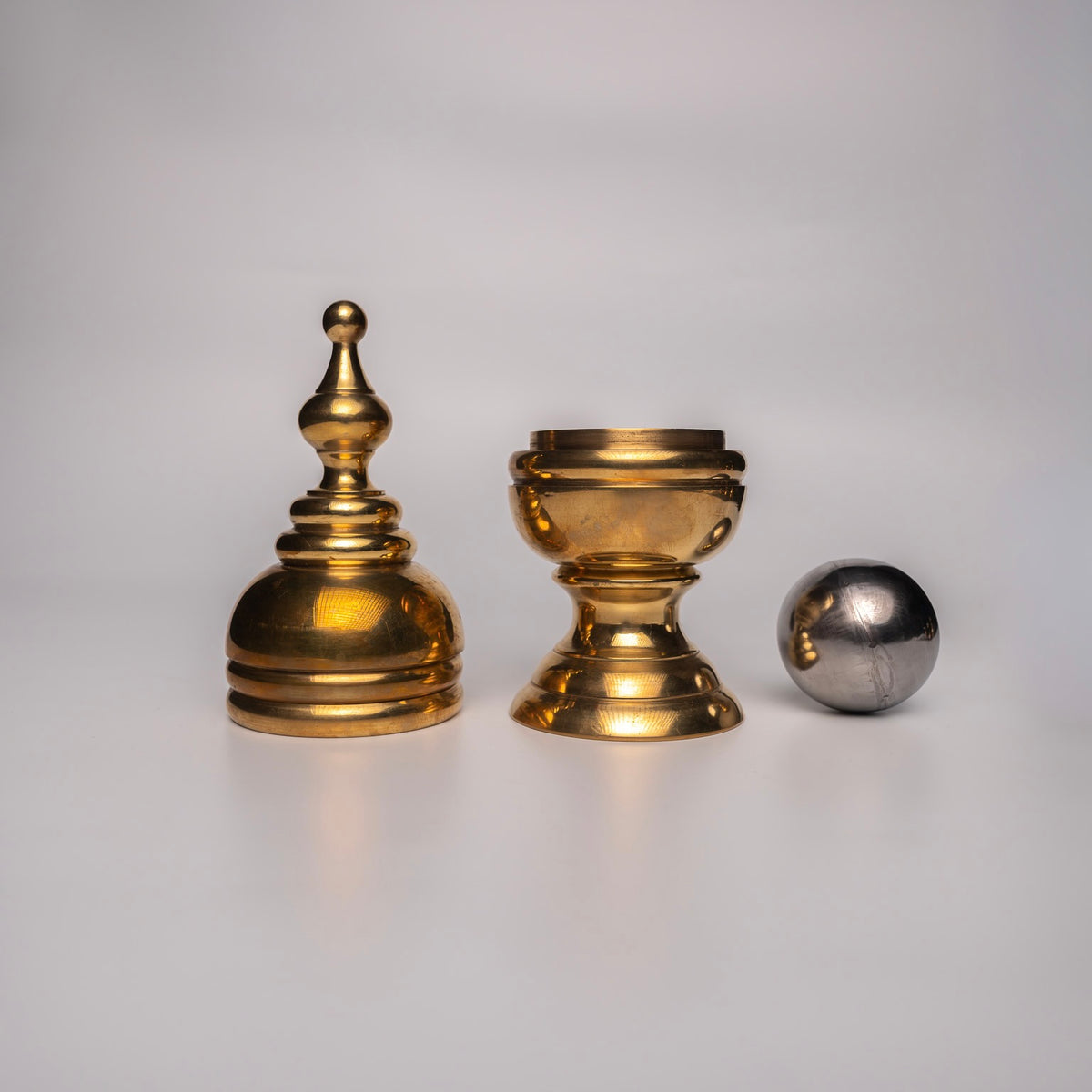This is a serious ball and vase for the elite collector. Standing 6.75 inches tall and 2.5 inches wide, it is the largest solid brass ball and vase ever made.
