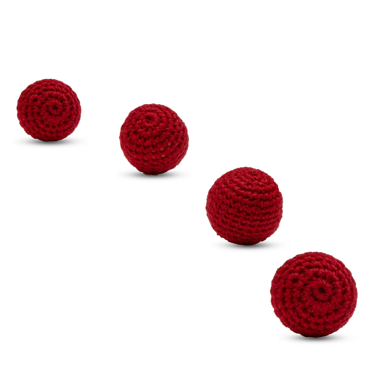 Gleaming set of 3 chrome Table Hopping Cups with 4 red crochet balls and rubber load balls, ready for magic mastery.