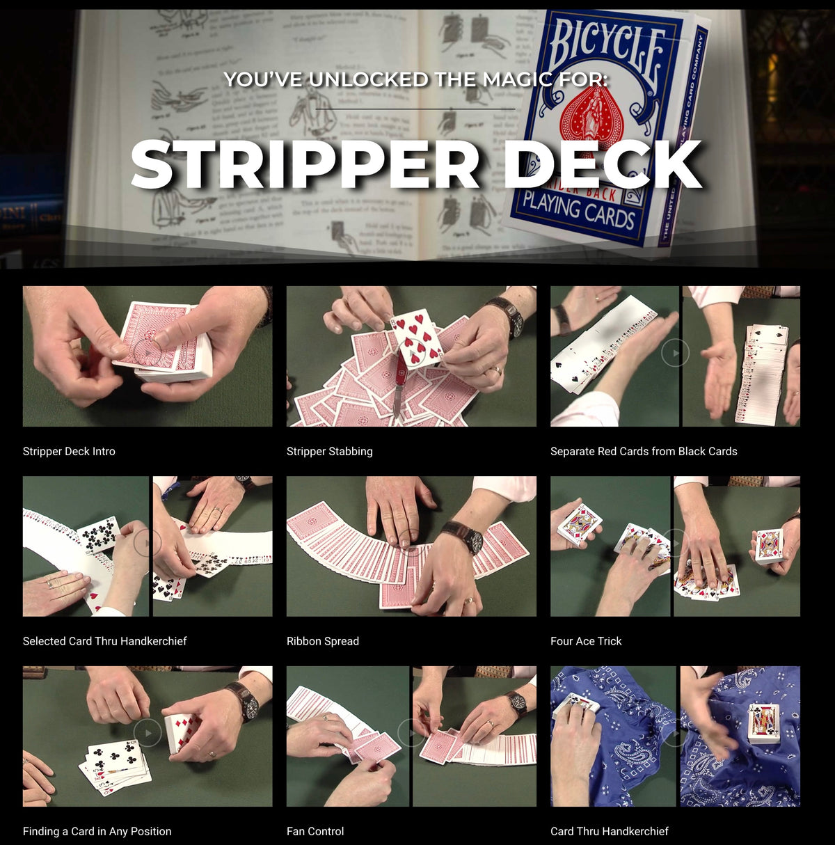 Bicycle Stripper Deck by Magic Makers with 10 Bonus Tricks