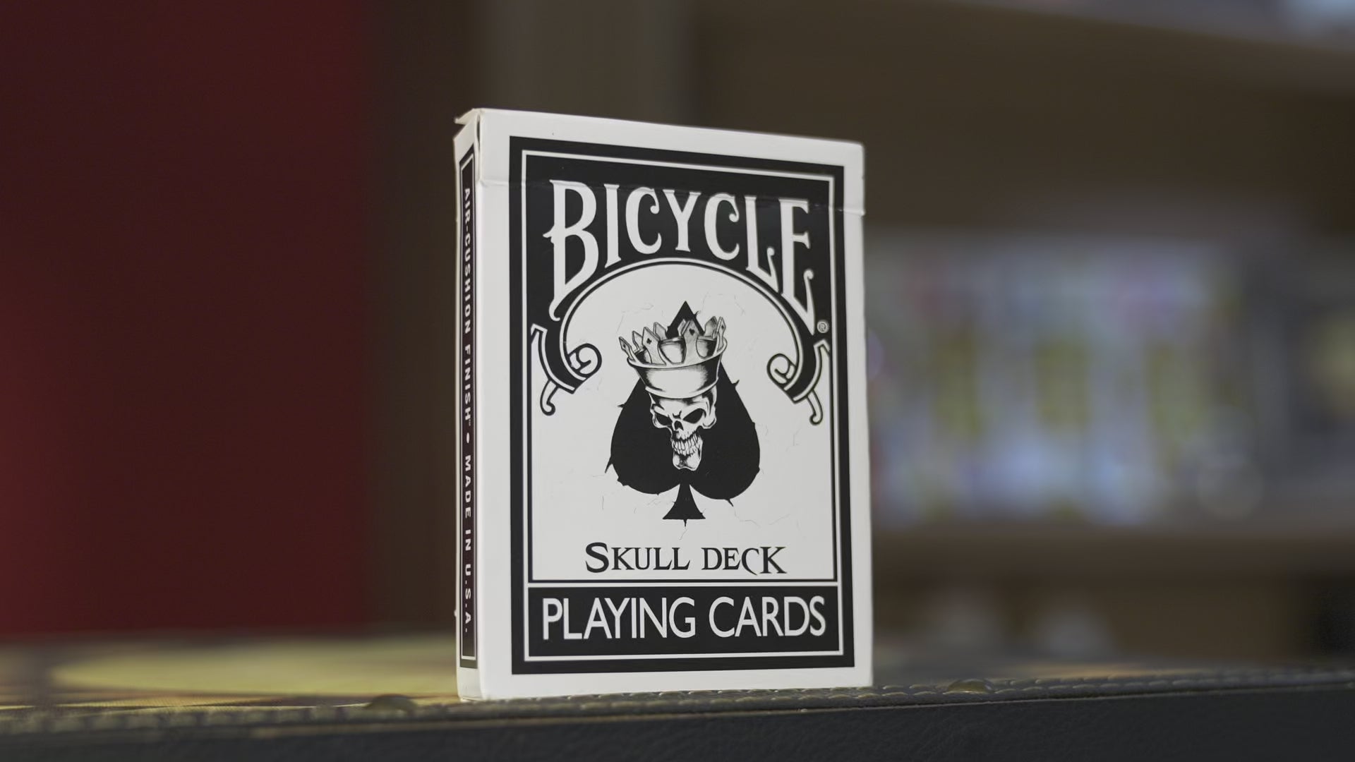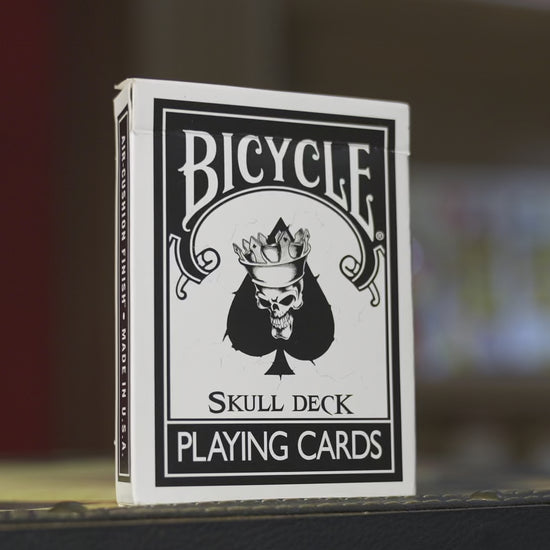 The most famous card back design is now descending into the hands of collectors and performers with it's new Skull Deck bone white Rider Backs. The Skull Deck is embossed with an air cushioned finish for optimum flow control. The deck comes complete with midnight black pips and a skull Ace of Spades.